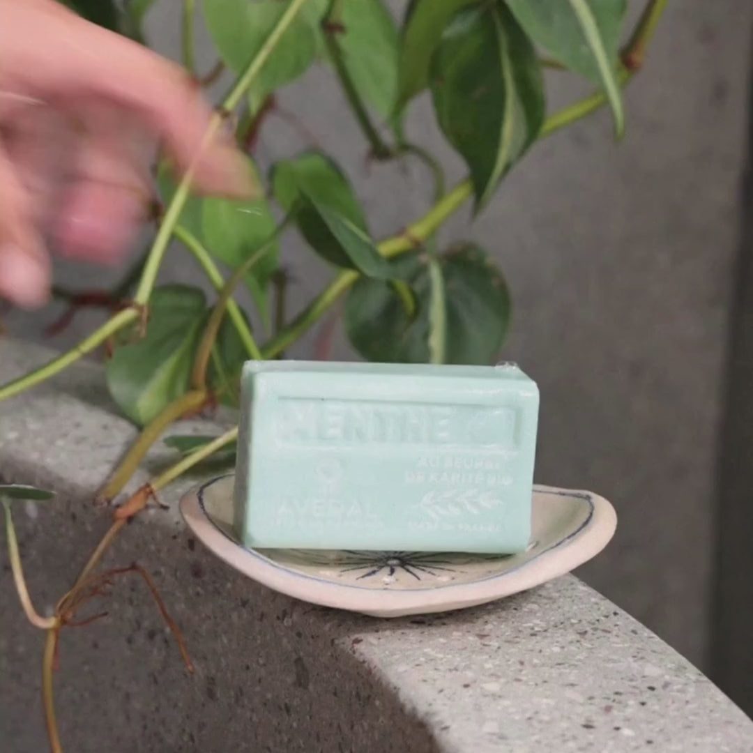 Crafted with 72% organic olive oil, shea butter, and glycerin. Infused with delicate Mint essential oil from Southern France, this soap is perfect for sensitive skin.